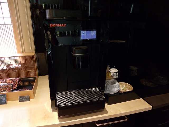 コーヒーは近鉄のひのとりと同じく挽きたてが楽しめるタイプです。まったりの3とほんのりの6の2種類が選べるようになっていて、香りが違います(^~^)。コーヒーマシンはBONMAC製で、UCC(上島珈琲)の系列会社です。