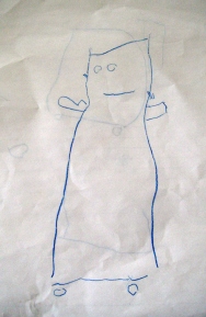 ようやく妊娠12週目に入りました。12週に入ったとたん、長いつわりのトンネルの向こうに光が見えてきたような気がします。お腹がすいてくると気持ち悪いというのは相変わらずだけど、「食べる→しばらくして、また気持ち悪くなる→食べる」のサイクルがこれまでは2時間ぐらいだったところが、最近は少しずつ耐久時間が長くなってきているような。。。実際、吐く回数も減ってきて、なんと昨日と一昨日は2日連続「ノー嘔吐デー」このままトンネルを抜けられるかどうか?!とは言いつつ、いまだにPCの前に長いこと座っているのが、ちとつらいので今日は写真中心で・・・・・最近、お絵描きがブームのたっくん。そのせいか、数か月前よりだいぶ進歩がみられます。この2つの絵、どちらもタイトルは「ママ」左は今年3月、右は先週描いたもの。3月のママは「おばけ」っぽいけど、だんだん人間っぽくなってきました。こちらは「SL」「ちょうちょ」なんていうかな、「これはSLかいたの」って絵を見せられて素直に「あ、ほんとだ~」と思えるようになったというだけで、かなりの進歩。(ま、「ちょうちょ」はちょっとビミョーだけど)ちょっと前までは、説明を聞いても、「へ、へえ~、これSLなんだ・・・」ってことが多かったもんね。とはいえ、今でも「へ、へえ~、これがね~」な絵は健在。「マイサバーイ(体調の悪い)の時のママ」ふーむ。確かに顔色が悪い。。。 っていうか、顔色鮮やかすぎ・・・よく見ると、目、鼻、口もあるんだけど、鮮やかすぎる顔色に圧倒されてなんだかよく分からないことになってます。さて、これは何の絵でしょう?「トラ電車が空をとべないので、ロケットが助けてあげているところ。下にいるのはトトロ」・・・・・・・だそうです。ちなみに青いのが「トラ電車」、水色のが「ロケット」。トラ電車という発想がどこから出てきたのか、まったくもって不明。そして突然トトロ・・・・(しかも似てない)こどもワールドってホントに不可解・・・いや、独創的でおもしろいデス