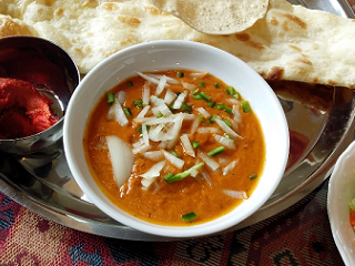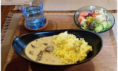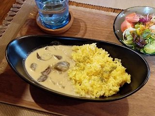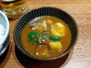 の「銀鮭のココナッツカリー」「南インドのセミドライなチキンカリー」