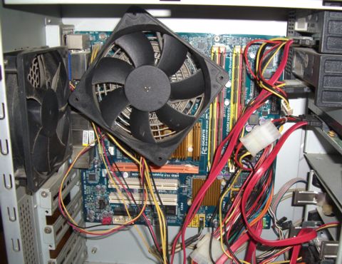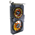 さて、消費電力的には問題なしのASUS製 HD4670搭載 EAH4670/DI/512MB。ただ、ファン付だけあって、「シャー」という高音がやや耳につきます。24時間動かすにはこのファンも何とかしたいところです。適当に調べてみたら回転数は2,000回転で固定らしく、ソフトウェアによる制御はできなさそう、とのこと。ということで物理的に何とかする必要がありそうです。というわけで、とりあえずファンを外してみました。電源ケーブルを外し、片側を持ち上げれば後はスライドするように外せます。もっとも、最初から「これファン簡単に外せるだろう」ということで買ったカードですので外れてくれないことには困るんですが。というわけでファンが外れた状態。至って普通のアルミヒートシンク。さすがにこのまま運用する勇気はありませんので、ファン交換、というより別の方法でファンの風を当ててやる必要がありますが・・・とりあえずAINEX FST-120というファンステイを使います。ただ、通常の設置方法ですとCPUクーラーが邪魔して設置できないのでアームの部分は使わず、ファンの部分だけ使います。首尾よくネジ穴が1つあったのでとりあえずそれで仮固定。ファンはKAMA-FLEX超静音1,000prm。んで、ケースを閉じて、PCを起動させます。室温27℃で起動10分後GPU温度40℃。で、ベンチということでゆめりあを回してしばらくほったらかし・・・20分後には91℃これはだめかもわからんねwちなみに純正ファン取り付けて同様にゆめりあ20分回しても58℃。伊達や狂酔でファンがついてるわけじゃないんですねwやはりカード上面からではなく側面から風を当てたいものですね。つまりカード平行になるようにファンを設置したいと。どうしましょうかね?