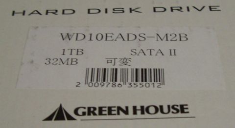 さて、先日買ったGREENHOUSEが代理店のWD10EADSの外箱。やっぱ、「可変」なんですかね・・・?