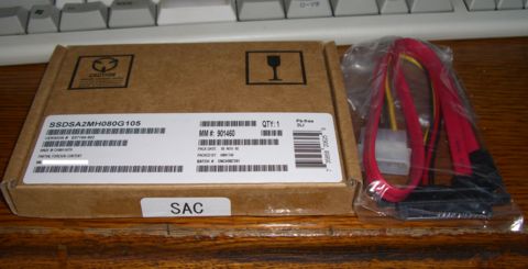 さて、仕事から帰ってきたらSofmap.comで注文していたPQI(Intel OEM)のSSDが届いてました。茶箱ですね。ケーブルがついてました。こんなんだったっけ?一応PQIであることを示す取ってつけたようなシールが1枚張ってあるだけ。ちなみに9mmにするスペーサーのようなものは付属してませんでした。ファームは8610。ちょっと古め?ベンチについては・・・もういろんな箇所で散々出てるので割愛します。そんな値です。あまりどうでもいいその他概要。重さ:82g消費電力起動時:2Wアイドル時:1Wベンチ時:2Wんで、どうしましょうかねぇ?コレ?EeePCにでも突っ込もうか?