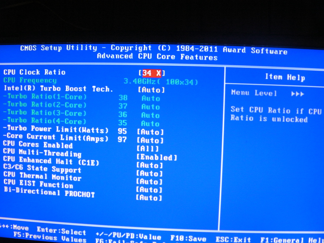 何はともあれ、電圧下げといったらCPU Vcoreですので、定格クロック3.4GHz時にどこまで下げれるかを大雑把に調べてみます。