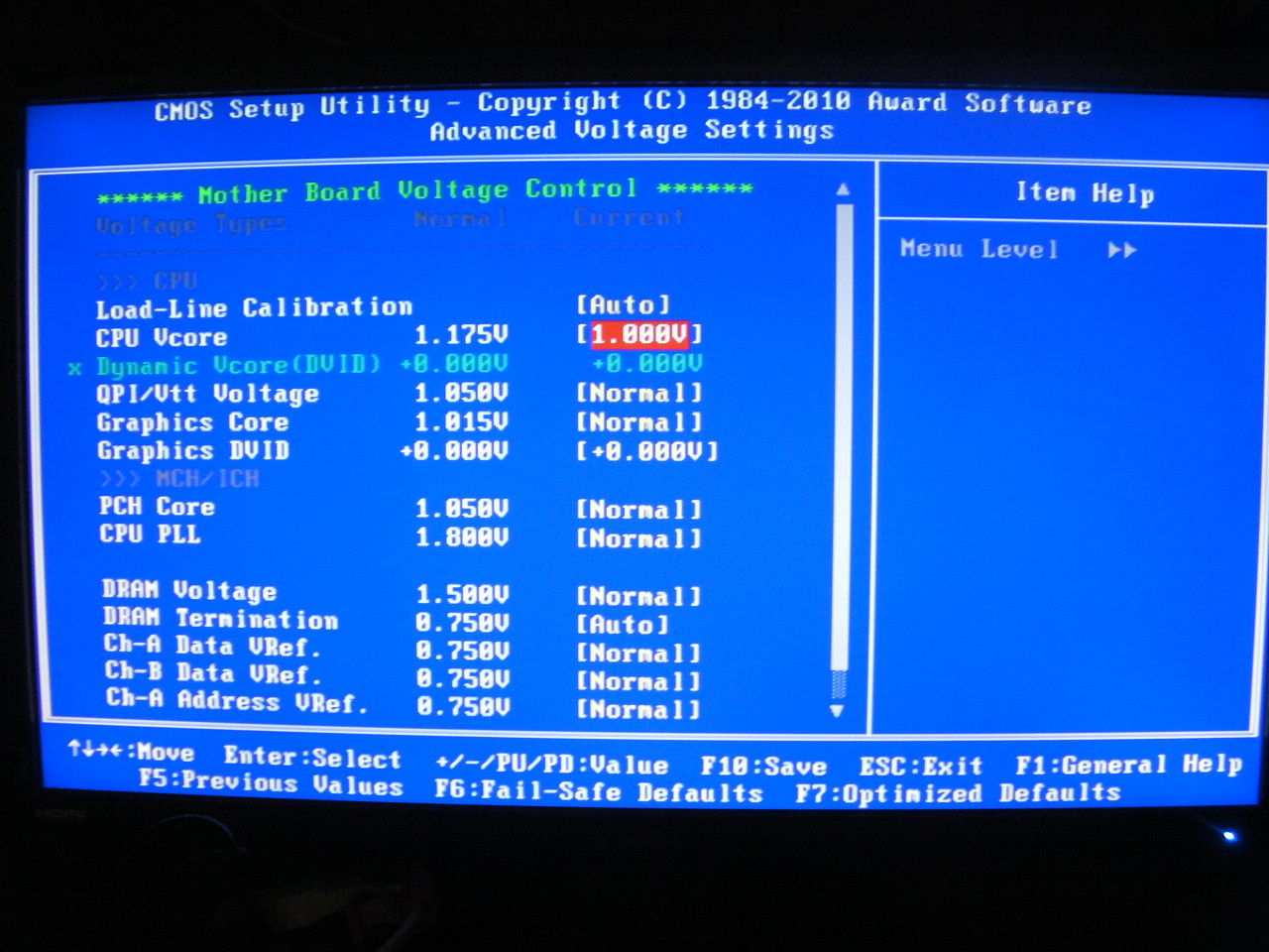 VCoreをNormalから±~Vで設定。この方法で1.0Vに指定すれば次回も次々回も1.0Vで起動します。
