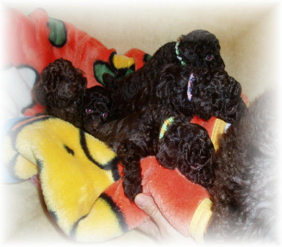 ☆・-・☆ こんにちは・僕たち生まれたよ!!☆・-・☆年末、元旦と 出産予定だった メロディーヌ&レミは、3日早く生まれ、 ママ達も 無事安産でベイビー達も元気にすくすくと、成長しています。とっても良いママ振りで、まずまず安心しました。今年の元旦は、もしかして 徹夜?と思っていたのですが30日から 大掃除も何とか出来、 年越しそばも しっかり食べ、元旦を迎えることが出来ました!!本当に親孝行な ママ犬達に、「ありがとう♪」の一言です。 ☆12月2日に生まれたドロシーベイビー☆ ♪5匹そろって こんなに大きくなりました♪ ☆12月27日に生まれたメロディーヌベイビー☆ ♪4姉妹の美人犬になりそうです♪ ☆12月29日に生まれたレミベイビー☆ ♪1匹の玉のような可愛い男の子♪ どの子達も、可愛く元気にすくすく成長しています!!ママ犬達と、一生懸命 子育てのお手伝に頑張ります・・・毎日、この子達の成長を見られることに幸せ、”感謝、感謝”です。