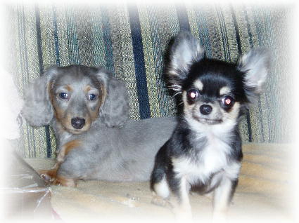 ☆・-・☆ 春&ライム ☆・-・☆ダックスの”春” やっぱ 名前が・・・姪の子供3才 女の子の名前をもらって ”春” はる と書いてしゅん と言います。とにかく 3才のくせに お口が達者で 大人顔負けで体力も いつも 全開パワフルな おもしろい子なのですが元気に育ってほしいと思って 名前をもらいましたが最近ちょっと あの温和しかった子が パワフルになってきて・・・・ ちょっと ★しまった★と 少し後悔?している 今日この頃です!!チワワの”ライム”は、7ヶ月の女の子ですが・・・小さくて 我が家に来たときは、 低血糖を起こし何度か病院へ走ったこともありましたが・・・今では、 2ワンコとも とっても 仲良しで 食欲旺盛な元気・元気な子達に育ってくれました。 ★寝る時も、昼間もいつも一緒・・・★