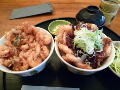 土曜日にまた丸の内の『千力』に行ってきました地下鉄の定期があるので行きやすいことに気がついたので行きは地下鉄、帰りは歩いて安売りのローソンでお買い物をするのが楽しみです。 この日も食べ比べ、1000円。かき揚げのつゆとかき揚げのみそ。でもこのお店で一番人気なのはかき揚げの塩です。 みそは上にねぎがたくさん乗っているのでボリューム満点に見えます。相変わらず、海老がたっぷりでおいしいのですがこの2ヶ月で4回は食べたのでちょっと飽きてきた感じ・・・ 体のことも考えて、しばらくいくのは控えようかなぁと思いました