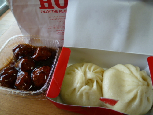 朝起きて、冷蔵庫を開けたら蓬莱の紙袋が肉だんご2パックと肉まんが入ってました。 まさか、前日は平日にもかかわらずだんなさん、大阪に行っていたのかと思いきや、大阪から名古屋に来ていたお友達に買ってきてもらったそうです。持つべきものはお友達ですね ここの肉だんご、安いしおいしいから大好きです。って、ほとんどだんなさんが食べてしまいましたが肉まんも1ついただきました。普段はあまり食べないのですがここのはおいしいです。お友達のおにたろうさんが大好きなのも納得です
