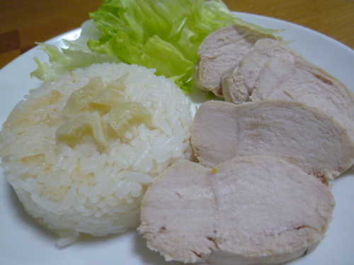 先日、伏見あたりを歩いていたら、シンガポール風チキンライスのお店があったんですね。それをみてから、チキンライス食べたいなぁって思ってたんですでもランチでも1000円近くするし、ちょっともったいないと思ったので自分で作ってみました。 レシピ・・・てきとう なんか、ぺった~んとした盛り付けになってしまいましたごはんの上ににんにくてんこ盛り。これに東南アジア風のソースをかけました。原価100円以下くらいでそれなりにおいしくいただけました。 あぁ、シンガポールでチキンライス食べたいなでもシンガポール、案外旅費が高いし、暑いから今まで行った海外の中では後ろから2番目くらいにイマイチだったかも