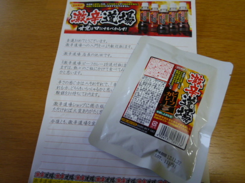 日本食研の激辛道場ビーフカレーを試してみました。激辛ファンサイトファンサイト参加中 こちらです。あんまりレトルトのカレーって食べないのですが激辛とのことなので楽しみ辛いのはわりと得意で昔、『LEE』が出していた10倍くらいの辛いカレーも普通に食べていましたよ、私 そんなに辛いのでしょうか?他の方のブログを見ると、ほんとに辛いそうですが 色は普通のよりちょっと赤いかな。牛肉が2切れ入っていました。他の野菜は溶けてるのでしょうか?具はこの牛肉のみでした試しに一口なめてみたら、めちゃめちゃ辛い口の中がすごく痛いかんじです。 全部食べるのは不可能だと思い、お皿に少しだけとってサフランライスと一緒に食べることにしました。 とにかく辛いです。痛いです。冷たいお茶を飲んでも氷を食べても辛さがひきませんこのお皿に盛った分も食べられませんでした。完全にノックアウト 罰ゲーム並み。 これはちょっと、もう食べたくないと思えるお味です。後味もなんか悪く、このあとしばらく調子悪くなりました