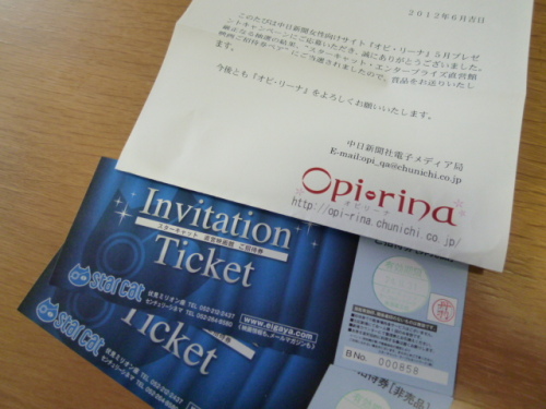 ちょっとうれしいものが当たりましたスターキャットの映画のチケット2枚。ミリオン座かセンチュリーシネマで使えます。すっごくうれしい~ 中日新聞の女性向けサイト『オピリーナ』で応募したものです。応募したのも忘れていました
