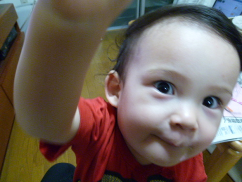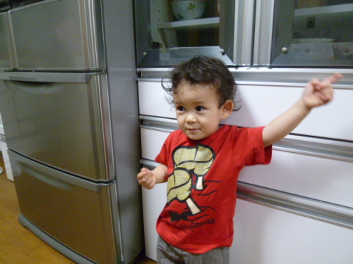 日曜の朝からなんかお腹の調子が悪いなぁと思っていたら、38度の熱も出て一日ダウン今日はかなりよくなったのですが念のため、安静中です。 週末、友達が子供をつれて遊びに来てくれてかなり疲れたのでそのせいかしら?? 『リーガルハイ』の古美門先生風に髪の毛を8:2にわけて遊んでみました。 ハーフみたいだけど、こてこての日本人。かわいいので芸能事務所に登録したそうです。 夜10時にやっと寝てくれました。 でもこのお腹の調子の悪さは1週間前に買ったマリオットのマフィンを食べたせいかしら??食い意地の張り過ぎは危険です