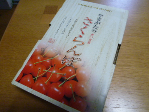 だんなさんの親が持ってきてくれました。 山形の赤い宝石。さくらんぼ最近よく見かけますがありえないほど高いですね~。 私はあまり食べないのでほとんどだんなさんが食べることになります。今のところ私が食べたのは1粒です。遠慮がちでしょ