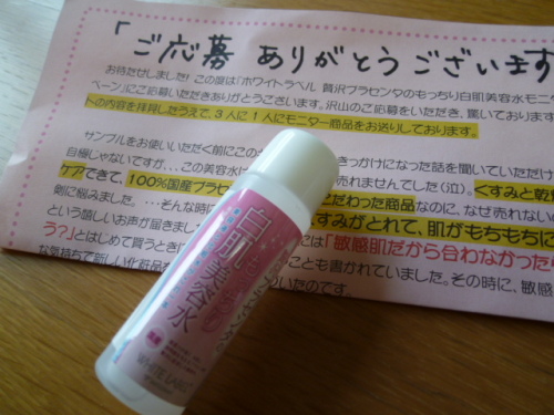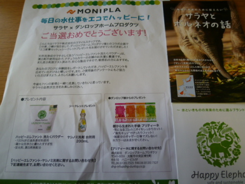 また、いろいろいただきました。 化粧水。あんまり浸透がよくなかったかな。 小林製薬の美容水。 ウィメンズパークでお水の懸賞に応募したら、なんだか会社の設定ミスでうまく応募ができていなかったとのことでポイントをいただきました。そのポイントでもらった図書カード。私は本はあまり買わないのでだんなさんにプレゼント 化粧水など。 ゴールドウィンのTシャツ。だんなさん用。 これは懸賞ではないのですが高島屋の友の会に入会したら、光るキーホルダーとショッピングバックをいただけました。毎月15000円ずつ積み立てることにしました 雪肌精のサンプル。これ、大好きなのでうれしいです。