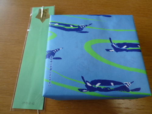 今月の赤福の朔日餅は水ようかんでした。お餅じゃないけど朔日餅です 夏らしい包み紙に短冊が1つもらえました。『やせますように、宝くじが億単位であたって働かなくていいようになりますように』と書いたら、願いはかなうでしょうか??? 5本入り。竹の筒に入っています。中身を出すときは添付のキリで後ろに穴をあけて出すんです。これがめんどくさい&うまくいかないのです やっと出ました。中身は細め。とてもなめらかな水ようかんです。美濃忠の水ようかんにちょっと似ているかなと思うのですが美濃忠のほうがもっと高級な感じかな。でも私、あんまり高級じゃない水ようかんが好みなので井村屋とかで十分だったりします
