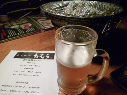 チューポンで購入したクーポンを使って、サンシャインサカエにある『炭火焼肉たむら』に行ってきました。今回は飲み放題つきのコースで一人1990円というクーポンを使いましたたむらも最初は混んでいましたが最近はすいているそうです。連休中日のこの日はちょっと待っている人もいました。観光客らしき若い人が多かったです。 ちょっと飲んでしまいましたがビール コースのお肉。あんまり多くないです。 ナムルとキムチ。 どんどん焼いていきますよ~。でも私、この日はお肉は控えて飲みに走りました。だんなさんが飲まないから私が飲まないともとがとれません ごはんものはついていないので追加でビビンバを注文。 マッコリを頼んだら、やかんに大量にでてきてビックリ。 なぜかかなり遅れてサラダ。忘れていたみたいです。 そしてこれもかなり遅れて出てきたトントロ。 観覧車が見える席だったので観覧車に乗っているだんなさんのオタ友を観察しながらどんどんお酒を飲んでいたら、10杯をこえていましたお肉はあまり食べなかったので、焼肉にきた満足感は全くなし、酒飲み大会に来たような時間でしたがまぁ、たくさん飲めたのでよかったです。