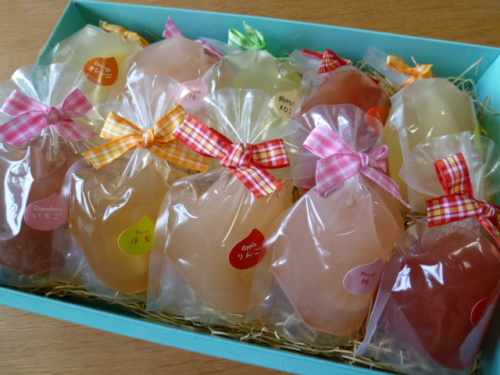 だんなさんのおばさんからゼリーをいただきました。 武蔵野市のパティスリーティアレというお店です。フィンランド洋菓子店と書いてあるのですがフィンランドってどんなお菓子??ゼリーにはトマトとかかわったものがありました。ラッピングもすごくかわいいです。 私はあまりたべないのでだんなさんが食べる予定です。