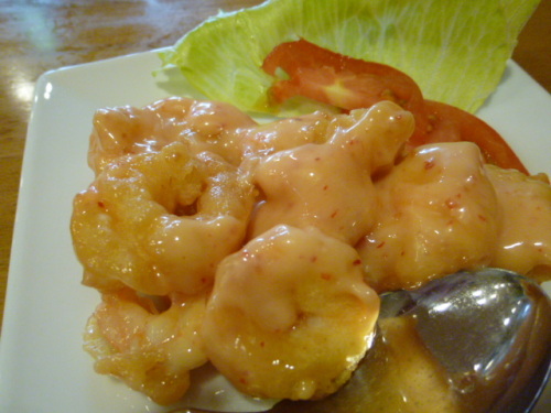 わがやの近所にある海鮮館、期間限定でキャンペーンをやっているので行ってきました。チェーン店の中華料理屋さんです。半額になったり、一律315円になっていたりとかなりお値打ちです。 半額の海老マヨ。おいしいのですが衣が多すぎです 半額のチンジャオロースー。だんなさんが大好きです。 半額のかに玉。もう少し半熟だといいのになぁ。 とんこつタンタン麺。あんまり辛くなくて、とんこつ味でおいしかったです この日はビールを飲まなかったのでトータル1700円くらいでした。安くてよかった