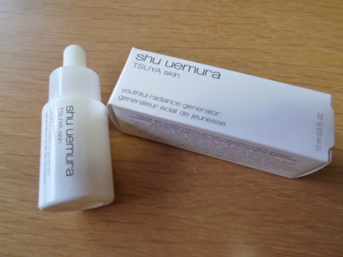 shu uemuraの8月1日新発売の美容液、TSUYAエッセンスのミニサイズをデパートでいただきました。 こちらです。現品は30mL入り。こちらのミニサイズは10mL入りと3分の1の量を使うことが出来ました 店頭のスタッフさんは『この美容液自体には保湿効果も美白効果もないんです。肌内部の細胞を生き返らせるようなイメージなので、肌の状態をよくしてあわせて使う美容液の効果を高めるものです。3日使えば、効果が本当によくわかりますよ』とおっしゃってました。 美容液自体に保湿も美白も効果がないって大丈夫かなぁと思いながら1週間使ってみました。 ピンク色のパールがかった、とてもきれいな色です。香りはちょっと強め。外国の化粧品のような雰囲気です。私はとても好きな香りですが、ちょっと好みがわかれるかもしれませんね。 このモデルさんみたいなきれいなお肌になれるのかしら?? さて、1週間使ってみたのですが効果は絶大です今までサンプルも含めていろいろな美容液を使いましたがこんなにいいと思える美容液にはあまり出会ったことがありません。この10年くらいで使った美容液の中ではダントツに一番です。3日目くらいから効果がわかると言われましたが、使った翌朝から効果がわかりました。洗顔時に顔がザラザラしなかったのです。その後、化粧水をぬる際もいつもよりサラサラ。そしてこの美容液をぬって、その後普段使っている美容液をぬった際、このときが一番サラサラ、そして肌がふっくらします。1週間たった今は肌のトーンが少し明るくなった気が保湿効果、美白効果ともに効果があらわれています。一度使ってしまったので、もう購入せずにはいられないという気持ちです。本当に1日使っただけでこう思えました。今の美容液からチェンジするわけではなく、プラスする感じなので今のものを使い切ってから購入する必要もないです こちらのクレンジングオイル、先日サンプルをいただいてからの大ファンです。こちらは現品、大切に使ってますこちらと併用するとしっとり感がますますアップします 最強の組み合わせです。 予約受付中とのことなので今、1本にしようか2本にしようか検討中7月中に予約して、8月1日から5日の間に購入すると、今回と同じ10mLのサンプルがいただけるとのことです。 この2つを使わせていただいて、すっかりshu uemuraの大ファン。もっと前から使っていればよかったなとかなり後悔です