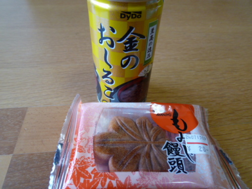 前回のたねやの水羊羹とは全然違いますがこちらもけっこう喜んでいただきました。 金のおしるこ&もみじまんじゅう。うちから歩けるところにキンブルといういろんなものがすっごく安く売っているお店があるんですね。最近、時間があるとたまに行っているのですがとってもおもしろいとってもインターナショナルで外国の人がすっごく多いのです。中東っぽい民族衣装の人とか、とにかく白人でも黒人でもない外国人がいつもたくさんいるのです。 このおしるこは25円、もみじまんじゅうは20円でした。安くて大満足です明日、また行ってみようかな。