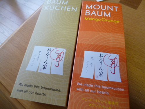 だんなさんの東京土産。これが最後のご紹介ふたりとも大好き、ねんりん家のバームクーヘン。最近は食べ慣れましたが最初は感激しましたクラブハリエはあんまり好きじゃないのですがこっちは大好きです。今回は普通の味とマンゴー味。 表面のサクサクが大好き1本平気でいけますが4等分して食べています。マンゴーはあんまり好みじゃないのでだんなさんに食べてもらうことにします。 最近はあまりお客さん並んでないそうです。そうそう、名古屋の高島屋に新しく入った八天堂、すっごく並んでますね。この新しいもの食べたい好きの私、珍しくまだ並んでないんです何回か名古屋に催事で来ていたときに食べて味を知っているので。たしかにおいしいけれど、今まで催事ではほとんど並ばなかったのにいまさら並んで買うのはちょっと・・・というかんじです
