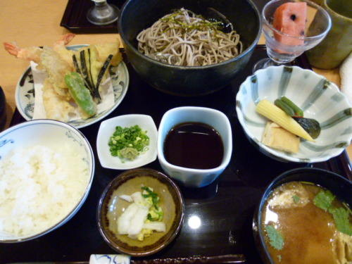 平日に丸の内で働いているお友達とランチに行ってきました。平日の丸の内のランチってあんまり行ったことないのですがちょっと裏に入るともうそこは錦3丁目、夜のお店が多いのですがランチをやっているお店もたくさんありました 『かわぐち』という和食のお店に行ってきました。ランチは4種類、私は冷やしそば&天ぷらにしました。お値段850円。なかなか豪華でいいかんじです。 すごく大きな海老が2本入ってます。 おそばもおいしい~。サラリーマンで混んでいました。 すこし時間があったのでどうしようかと思ったら、友達の働いているビルの一番上が誰でも入れる食堂になっているとのことで連れて行ってもらいました。ここでジュースを飲みながらこの景色を満喫しました