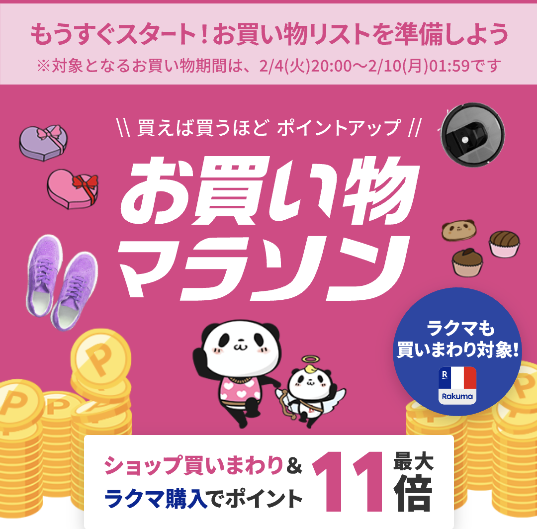 【広告が入っています】こんにちは、ななパパブログです早いもので、2025年が始まって1ヶ月が経ちました。早いなぁと前にも言っていましたが、やはり早いですね!さぁ、もうすぐ始まる→2月4日 楽天市場でお買い物マラソンが始まります。『楽天市場参考:お買い物マラソン』今回は、4日〜10日までとなっています。もちろん、ラクマ使って11倍!買周りすればするほどポイント貯まっていきます!!お買い物マラソン開始2時間限定のタイムセール半額以下クーポンは、獲得しよう!先着のお得な物多数あり!『楽天市場参考:お買い物マラソン』ショップの一部ご紹介!【AIKIMNIA】話題の商品多数取り揃えています!!【イーザッカマニアストアーズ】レディース新作ワンピやコートやニットなどを取り揃えているおすすめショップです!!【MarineBlue】楽天ランキング常に上位を達成ショップ!!大人気ベビー服、スタイ、パジャマなど、おすすめショップです!!必ずお買い物マラソンエントリー忘れないように!!お買い物マラソンエントリーは→ お買い物マラソン会場!!