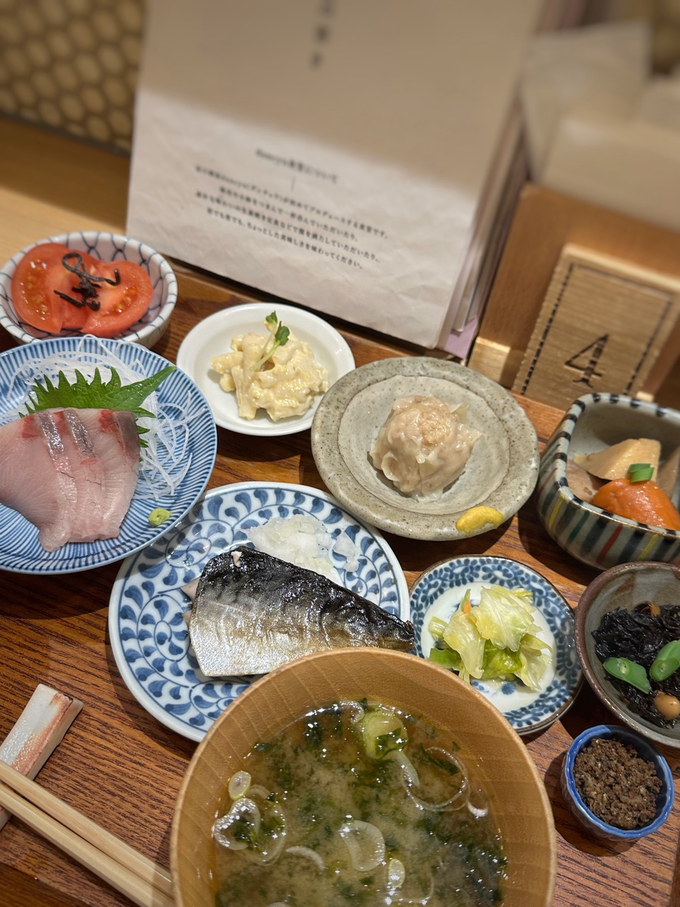 定食っぽいものが食べたくて伺ったのは東京駅改札外グランスタ八重北1Fの八重北食堂にある雑誌dancyuプロデュースのお店できた当初はアジフライ(絶品だったのよ)目指して伺っておりましたがいつの間にかメニュから外れてしまいそれ以来、看板メニュの生姜焼き定食や小鉢定食でもお世話になっていたかなぁが… 季節の小鉢定食となっていてもほぼ内容が変わらないので飽きちゃうんだよね旅行者の方にはそれでもOKだと思いますが近隣ワーカーにとっては ねそんな訳?で2年振り?くらいで伺った訳は定食食べたい って感じだったのでね季節の小鉢定食はいつの間にか1380円と大幅値上がりです(多分200円以上かと)10分くらいで到着この日から始まる季節限定メニュの高瀬ブリのサンプルということで通常の皿数より1皿多いですブリのお刺身はあまり得意ではないですが品数増えるのはうれしいかも塩昆布ののる冷やしトマト …冷っこくて甘くておいしいトマトなのは塩昆布の塩味もあるのかな居酒屋さんで出てきそうな王道マカロニサラダ手作り感があって好きですもう一つの名物メニュ焼売はずっしりとしていて肉肉していて …一口では食べられない大きさチキンも入る筑前煮、ひじき、肉そぼろとお味噌汁メインは鯖の塩焼きなのですがこれは尾のところだったので脂ののりはイマイチしかもちと焼すぎ?お箸でほぐせなかったです仕方がないのでかじりましたがあまりお行儀のよい食べ方じゃないですよねできればホクっとほぐれてほしい…ブリの脂ののりはめちゃくちゃありほんの少し添えられているワサビじゃ足りないくらい3切れだったのでおいしくいただけましたご飯にそぼろ?振りかけ?をかける暇もないほどのおかず量ふっくらとした白米おいしいけれどおかずにかまけてあまり食べられず…お味噌汁も出汁がおいしいく満足バランスの良い定食… たまには良きかなInstagram はこちら(^^♪dancyu食堂 MAP東京都千代田区丸の内1-9-1 東京駅 グランスタ八重北 1F 八重北食堂☆★ブログランキングに参加しています★☆一日一回ポチッと応援クリックよろしくお願いしますにほんブログ村こちらもよろしくねメッセージはこちらからお願いします