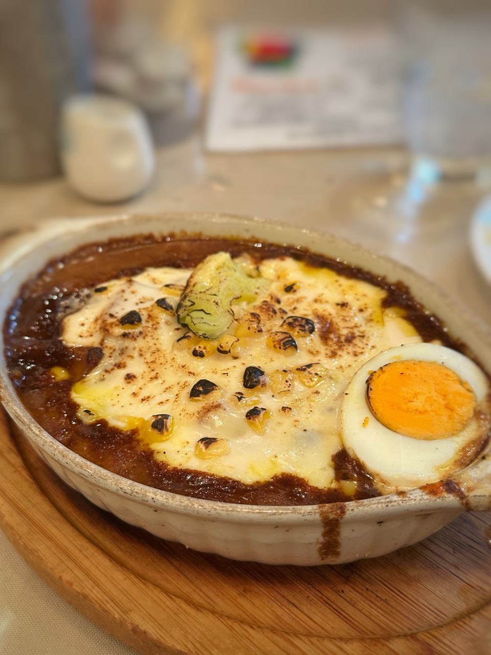いつも大行列で恐れをなしてしまう?超人気店のこちらまだ食べていないメニュもあるし春になる前にグラタン食べたくて…11時オープンに変わったという情報もある中11時17分に到着したところどんどんと中に案内されている状況何時に開店されたのかしらね??ともあれ、並んでいる方々がちょうど吸い込まれたところにワタクシの番となりまして …ラッキーなことに待ちナシ!そして、最後の1卓でございました相変わらハンバーグが一番人気の模様ですが寒い時季にはコレ!的グラタンメニュドリア、スパゲッティグラタンペンネグラタンもありますがジジババ風カレーチーズドリアをお願いしますサラダとドリンクが付いて1250円このブログを書いていて気が付いたのですがなんと、ワタクシ昨年このメニュいただいておりました宿題にしていたと思ったんだけどなぁ我が記憶に愕然 …去年の春のカレーチーズドリアは↓こんな 昨年より100円アップのようです胡麻ドレッシングのキャベツとレタストマトのサラダとアイスティをいただきながら待ちます …オーブン料理はオーダー後の調理なので提供時間は長めグツグツと音をたてながら運ばれてくるドリア熱々でやけど必至のキケンなヤツでも香ってくるカレーの匂いに抗えずフーフーしながら スプーンの端っこをパクっいかにも手作り感ある欧風カレーはスパイシーさを感じるものの辛みはあまりなくマイルドなカレーそこにたっぷりとチーズがかかっているのでさらにマイルドになっています昨年は「ベシャメルソースもたっぷり」と書いていたんですが、今回はベシャメルではなくフレッシュなサルサっぽいトマトソースがご飯の上にかけられ、そこにカレーとチーズの層になっているようでしたこのトマトがまたさわやかさを運んできてくれて食べやすくなっている印象具はコーンと玉ねぎを確認しましたが少々寂しいでも上にゆで卵半個がうれしい!のと謎の緑の野菜(食べてみても良く分からず、きゅうり?)もアクセントにもなりましたちなみに昨年は「コーン、ブロッコリ―、チキンベーコン」って書いているのでいろいろ大人の諸事情なのでしょうかしらねでもこってりし過ぎず、やんちゃ過ぎず大人のドリアっぽくなった今年バージョン?ただ今回だけが違うのかもですが…好みはそれぞれですが、今年のドリアすごく好きInstagram はこちら(^^♪ジジ&ババ MAP東京都中央区日本橋2-2-15 日本橋テイトビル 2F☆★ブログランキングに参加しています★☆一日一回ポチッと応援クリックよろしくお願いしますにほんブログ村こちらもよろしくねメッセージはこちらからお願いします