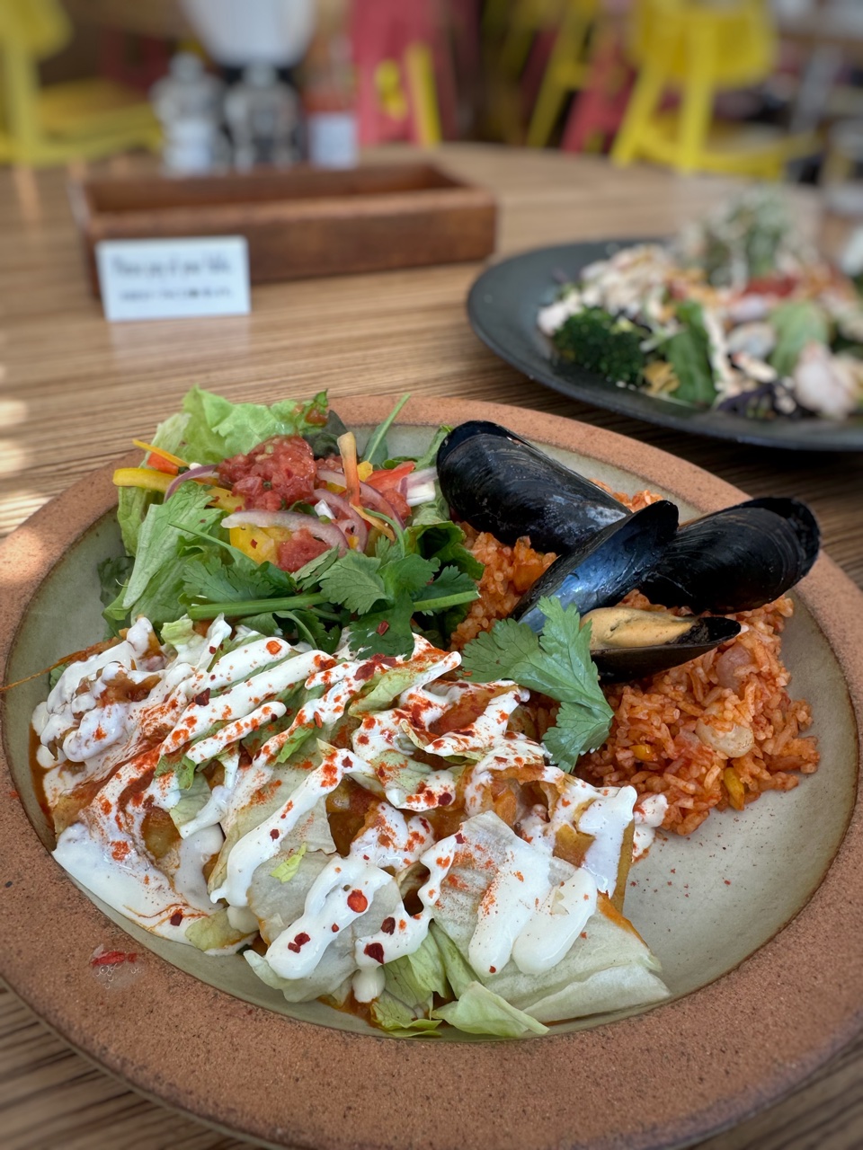 今週のWeekly Mexican Lunch!2月のテーマはMariscos y Verdurasだったのシーフードとお野菜をふんだんに使ったお料理ってとっても魅力的だったのに旅行していたりで一度しか伺えなかった 痛恨の極み2月ラストの週はEnchilada de Camalonおおおお、エビのエンチラーダですと?!なんとかやりくりして伺いましたよかなり量が多そうな感じだったのでシュリンプ シトラスサラダとシェアどちらもランチメニュなのでスープが付きますこの日のスープは(写真無し… はて)カボチャとチキンとのことでしたが甘いカボチャではなくバターナッツっぽい感じでピリ辛チポトレとよく合い ほっこり~サラダは比較的さっぱりとしたものですがトルティーヤが付いてくるので案外お腹にずっしりくる侮れない?サラダレタスなど葉物たっぷりのサラダをベースにブロッコリ、スプラウト、パプリカなどを盛り込み、エビとイカがザクザク入っていますシトラスというだけあってライムを絞ってさっぱりと …なんですがドレッシングはヨーグルトの入るシーザー系の濃厚タイプなのでシーフードにとても合うのですよ(個人的に好きな味)トルティーヤに巻いてもOKですがそのままでも十分においしくいただけますエンチラーダはエビとチーズをコーントルティーヤでクルクルと巻いて焼き上げてから濃厚なチーズソースと燻製した唐辛子(チポトレ)のスパイシーなサルサをかけてあるので めちゃ濃厚!エビとチーズ …めちゃくちゃおいしいですさらにサイドに盛り盛りとサラダエビとムール貝(映えますな、ムール貝)のトマトベースのベジタブルライスも添えられてなんともゴージャスなワンプレートですInstagram はこちら(^^♪MUCHO MODERN MEXICANO(ムーチョ モダン メキシカーノ) MAP東京都千代田区丸の内2-7-3 東京ビルTOKIA 2F☆★ブログランキングに参加しています★☆一日一回ポチッと応援クリックよろしくお願いしますにほんブログ村こちらもよろしくねメッセージはこちらからお願いします
