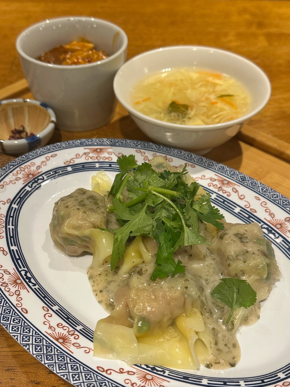 東京駅八重洲北口グランスタ八重北の2F北町酒場にある屋台のような中華店名が東京屋台なので屋台なのよね えっ?この辺りではCPがよろしいので大変な混雑っぷりのランチ界隈どうしても久しぶりにこちらのワンタンがいただきたくての参戦でございます11時40分くらいでギリ待ちナシの入店です皿ワンタン定食は3種からソースが選べてパクチーソースをいただきます後は豆板醤と麻辣坦々だったかな?麻婆豆腐とご飯、スープ付きで1100円花椒の粒が付いてくるのでセルフですり鉢でスリスリ、麻婆に投入かなり痺れるので麻婆は後からいただきます!パクチーソースはあまりパクチーパクチーしていなくて濃度のあるパクチー入りソースってところでしょうかでもパクチーの香りはバッチリとあるのでパクチー好きにはたまらない味付けお肉みっちり、とまではいかないけれどお肉感多めの餡はふんわりとしていて薄くてチュルンとしたワンタンの皮に主張し過ぎず喉越し良く?通り抜けていきます熱々スープはたまごとキクラゲやわらかい濃度があって寒いときにうれしいヤツ最後に痺しびの麻婆豆腐お好きな方は麻婆丼にしていらっしゃるみたいですがマーボもカレーも飲み物なワタクシ口の中を痺シビにしつつペロッと平らげてしまいましたスープ、ワンタンと麻婆 いろいろいただけてこのお値段サラリーパーソンの救世主のようなお店ですInstagram はこちら(^^♪東京屋台 MAP東京都千代田区丸の内1-9-1 東京駅八重洲北口 2F☆★ブログランキングに参加しています★☆一日一回ポチッと応援クリックよろしくお願いしますにほんブログ村こちらもよろしくねメッセージはこちらからお願いします