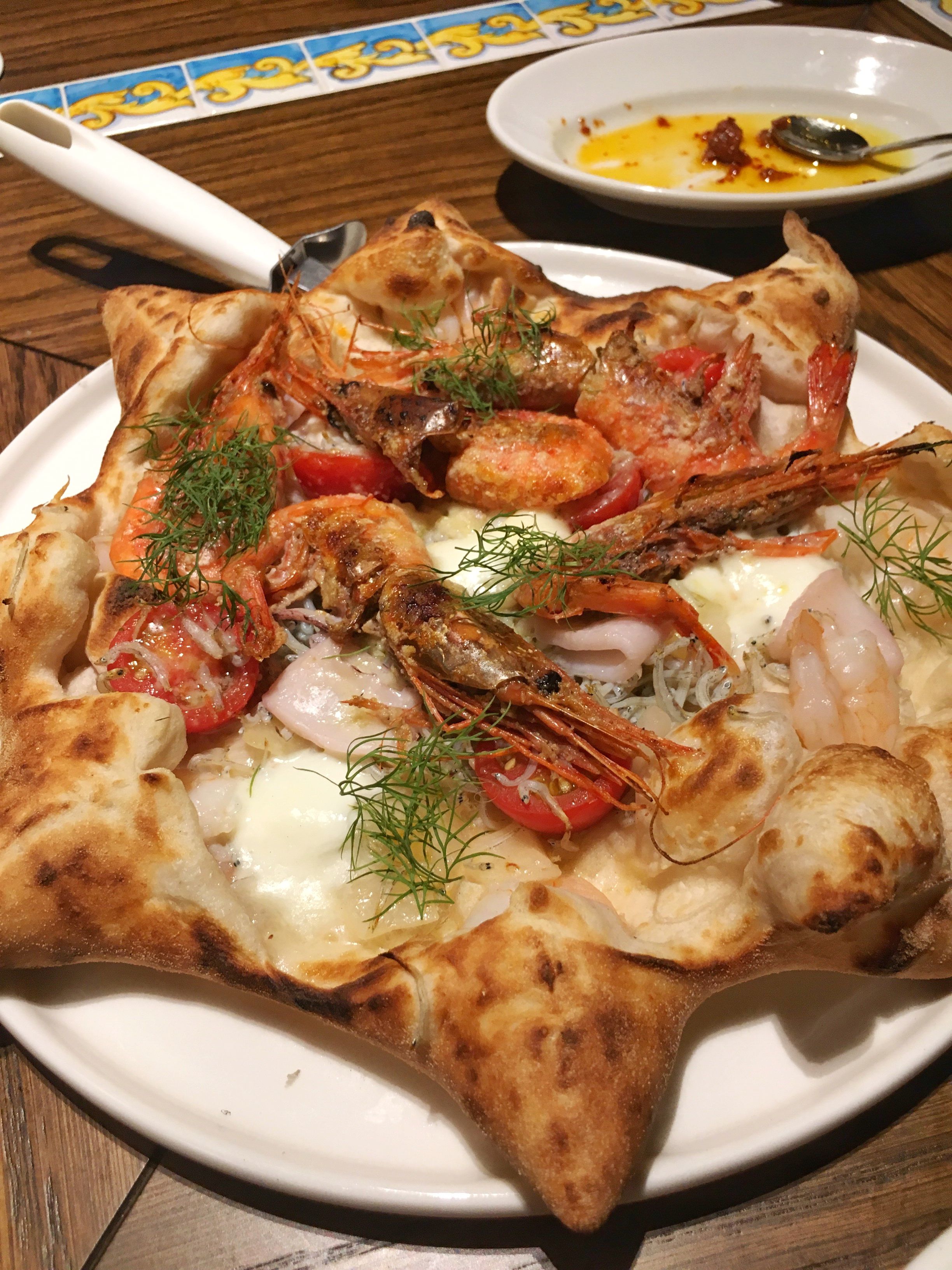 エビ、イカもたっぷりでこれってかなり美味しいピッツァ