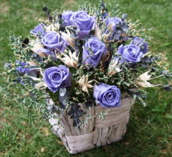 プリザーブドフラワーのアレンジを作りました。ヴェルモントの青い薔薇があったので、夏らしく、青と白でまとめてみました