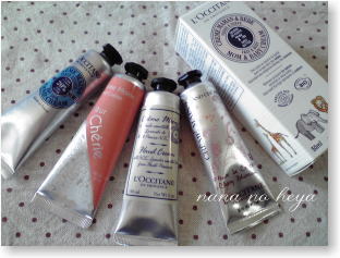 こちらもフランスで買ってきたロクシタンのハンドクリームお友達へのお土産と、自分用にたくさん買ってきました家事をやるようになって手の乾燥がさらに気になり始め今ではハンドクリームは手放せません。ちなみに、今は「ローズ」を愛用中匂いがきついかなあ・・・と最初は思ったのですが、慣れるとぜんぜんそんなこと無いです。 【LOCCITAN】ロクシタン ラベンダーハンドクリーム(ハンドクリーム) 30ml【YDKG-s】ポイント最大9倍★38%OFF手肌にリッチな潤いを与えるハンドクリームロクシタン シア ハンドクリーム 30ml5,250円以上ご購入で送料無料☆ロクシタン(L'OCCITANE LOCCITANE) ハンドクリーム 30ml【箱無し】【YDKG-ms】【あす楽対応_九州】【あす楽対応_中国】【あす楽対応_四国】【あす楽対応_近畿・関西】【あす楽対応_東海】ポイント最大5倍しっとりとなめらかな潤いを与えるハンドクリーム【2/21再入荷】ロクシタン チェリーブロッサム ハンドクリーム 30mlL'OCCITANE ロクシタン ローズ ハンドクリーム 30mL【箱なし】