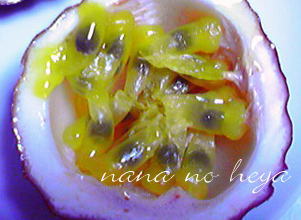 実家で何年も前にもらったパッションフルーツの木に実がなったというので・・・割って食べてみました。柑橘系のとってもいい匂いこの中の、黄色い部分を種ごと食べるようです。種はすいかの種みたい。取りたいけれど、黄色の部分にしっかりとついているので一緒に食べました。食べる部分が少ないのでなんとも言えませんが、びっくりするような味もせず、甘かったですこんな南国フルーツが、岐阜市内でできるなんて驚きです・・・ 【送料無料】商品点数800点以上!築地発送商品(冷蔵・常温のみ)税抜5000円以上ご購入で当社が送料負担します。※一部地域、商品除外あり【Ku】【プロ厳選】【築地発送】鮮度抜群、入荷後即発送パッションフルーツ1個、約80~100グラム前後 パッションフルーツのものいろいろパッションフルーツアイス90ml期間限定フレーバータカラ 琉球ハイボール 沖縄パッションフルーツ 350ml 1本・朝食のトーストに・アイスクリームやヨーグルトのトッピングとして頂くと、相性抜群です・一工夫で手作りケーキやお菓子にも。パッションフルーツジャム(赤)100gコンチネンタルセレクション パッションフルーツ 25袋 【紅茶】バリ島より直送!手軽に香りを楽しめる匂い袋ALAM ZEMPOL社製 サシェ パッションフルーツ艶やかなパール感を与えて、イヤなニオイはカット!!マーガレット・ジョセフィン MJヘアフレグランス 【ローズシトラス】・【パッションフルーツ】 各100g【駅伝_大阪】甘酸っぱいパッションフルーツの香り・・・韓流百貨店の韓国コスメ特選♪エチュードハウス リップパフューム3号(パッションフルーツ)◇E003【cosme0907】【駅伝_東京】