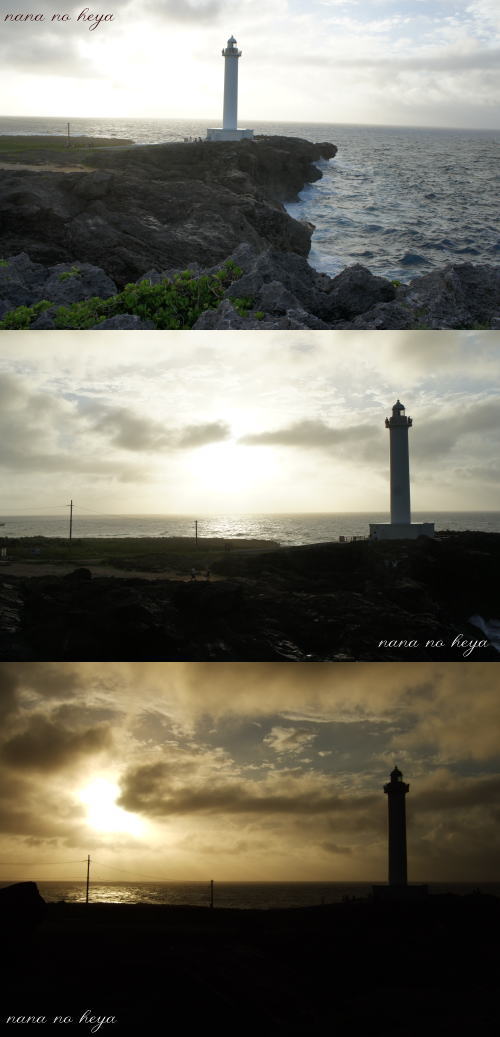 急いで琉球村を出て、夕日のきれいな残波岬へ台風の影響もあるのか、岬はものすごい風です。ごつごつした岩の上を歩きながら端へ端へと進みましたが、風に飛ばされてしまいそうだったので、適当なところでやめました。とにかくすごい風だったので、夕日が沈むのを待たずにホテルに向かいました。