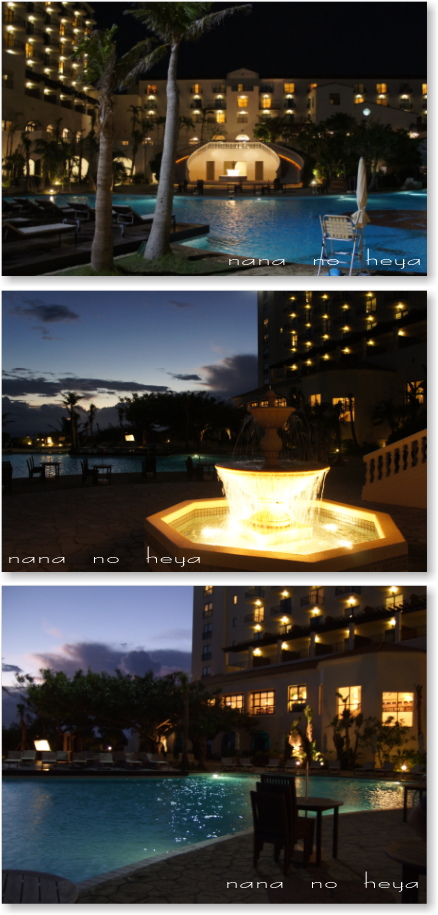 夜のホテル日航アリビラもプールや噴水のライトアップもあり、素敵です。プライベートビーチも、静かなので波の音が響きます。敷地内にあるチャペルもライトアップされてきれいでした ホテル日航アリビラ(詳しくはコチラ↓) ホテル日航アリビラ