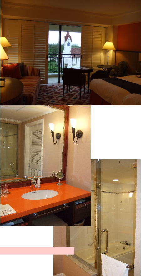一日目、二日目の宿泊は読谷村にある「ホテル日航アリビラ」です。普通のスタンダードなお部屋からプレミアにアップグレードしてくれましたとても広々としていてキレイです。ベランダにもテーブルとチェアがあるのですが、この日は台風が来る心配があったため、室内に。お風呂は洗い場もあり、こちらもとっても広いです。洗面所にはイスもあり、コンパクトな丸い鏡まであったのでとても便利でした ホテル日航アリビラ
