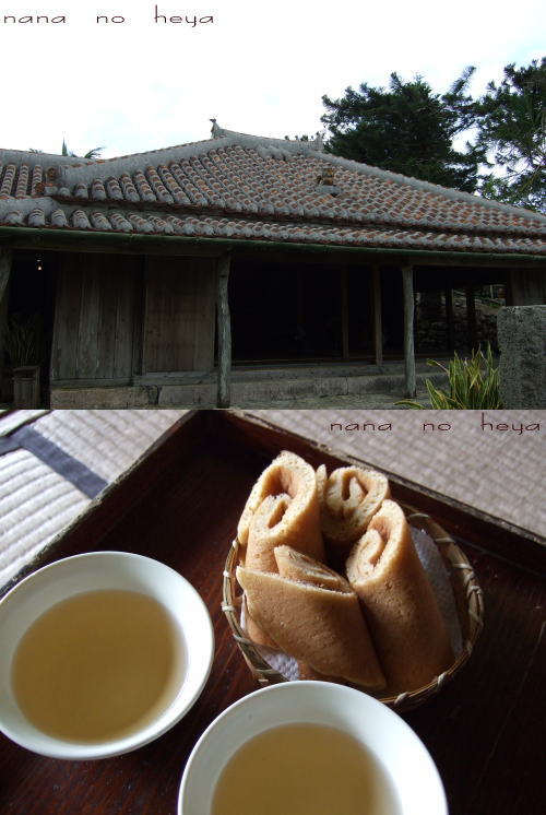 旅行社のパックに琉球村のチケット類がついていて、ホテルにも近いので行ってみました。こちらのポーポー(小麦粉に黒糖をまぜて焼いた、沖縄風クレープ)もサービスです。畳にすわってのんびり休憩ポーポーは、クレープというより、見た目からもわかるようにどら焼きの皮のようです。黒糖の甘みがほんのりしてやさしいおいしさでした。その他デザート券もあって、パイナップルのアイスも食べました