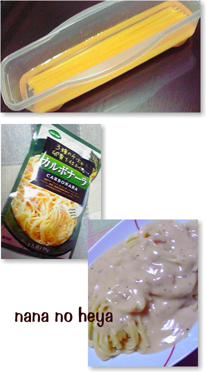 電子レンジで簡単にパスタができる容器を100均で買いました。私が購入したのは、ゆで時間プラス4分なので多少時間はかかりますが、一人分を作るにはとても便利です。100均では無いかもしれませんが、2人分を一度にゆでることができるものもあるので、そちらもオススメです。簡単にすませたい時はパスタソースもコープのカルボナーラに・・・あたためるだけなのでお手軽です 火を使わないのでお子様でも安心!電子レンジ調理器 パスタレンジで簡単調理タッパー シール容器 1人用メール便発送できません100均【駅伝_大阪】レンジ調理道具_レンジでパスタ 1.2Lレンジでパスタ 1.2L