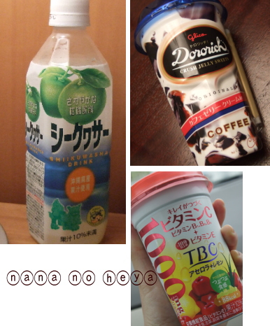 沖縄では、シークワーサージュースをよく飲んでいました。さっぱりしていて暑い日にはピッタリです。そして、私のドライブのお供、ドロリッチやビタミン補給にTBCのドリンクも。