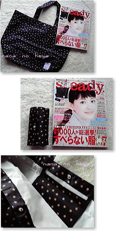 steady.11月号の付録は、AG by aquagirl(エージー バイ アクアガール)のくるっとたためる大型トート雑誌もすっぽり入る大きさで、くるくるたたんでスナップで留めるとコンパクトになります。内ポケットもスナップもついていましたお買い物や旅先で荷物が増えた時にも使えそうです。トートバックの付録はよくあるけれど、コンパクトにたためるところがいいですね 【送料無料】Steady. (ステディ) 2011年 11月号 [雑誌]