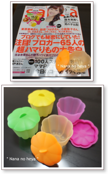 Saita(サイタ)5月号の付録は4色のフタ付きシリコンカップです。シリコンカップはよくあるけれど、フタ付きっていうのはめずらしいのでは?フタ付きなので蒸し料理もできたりこのまま保存できたり便利そうです。プリンやゼリーをはじめ、シリコンカップを使ったいろいろなレシピも載っていました!何から作ろうかな Saita 2012年5月号 / Saita 【雑誌】