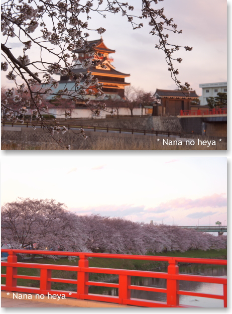 土曜日の夕方、清州城の桜を見に行ってきました。この日はとても寒くてじっとはしていられませんでしたが、桜も結構咲いていて、夕日に照らされる清州城もきれいでした。その後、夕ご飯を食べてから、今度は夜桜を見ました。昼間も華やかでキレイですが、夜は夜で、また違った雰囲気を楽しめます。ライトアップもされて、幻想的でした