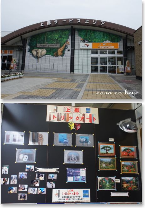 今回、新東名を走る際に立ち寄った、上郷サービスエリア。上郷SAと言えば、トリックアートです。全部、見つけられたでしょうか・・・。トリックアートは、実際に見たときはそんなに感じないのですが、写真に撮ってみるとすごく立体的に見えますね