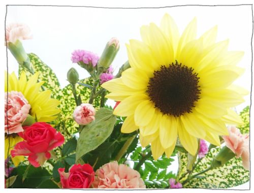 ひまわりのアレンジメントと、手作りのクッキーをいただきました。久しぶりの手作りクッキー。美味しかったです♪ひまわりのアレンジメントは玄関に飾りました。お花があると華やかになっていいですね(^-^)にほんブログ村