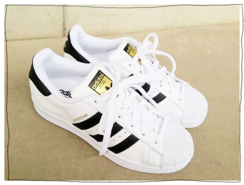 今年、購入したスニーカーアディダスのスーパースターです。白スニーカーは、汚れが気になる・・・と、避けていたのですがやっぱり明るい色のものが欲しくなって購入。汚れ防止のために防水スプレーをしています。そのおかげか、少しの汚れはささっと拭くだけで取れます。コンバースとも迷ったのですが、コンバースは重いのでこちらのスーパースターにしました。スーパースターは軽いです(^_^;) 後ろ姿はスタンスミスと似ていますね。 【ADIDAS】 アディダス SUPERSTAR スーパースター C77124 WHT/CBK/WHT【ADIDAS】 アディダス STAN SMITH スタンスミス M20324 ABC-MART限定 RWHT/RWHI/FAIR にほんブログ村