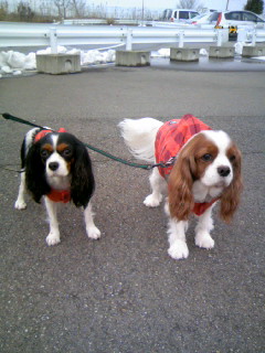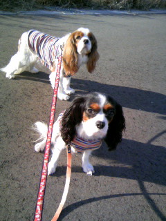 今日は…少し温かかった? 念のため、ルフィさんとれもんさんにベストを着せてお散歩に☆*:・°★:*:・° 途中でだんなさんは、1000円カットの床屋さんに立ち寄って、カット♪ その後ケ~キ屋さんでケ~キを買って、帰宅♪ 楽しかったね~♪