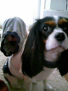 風邪!なおった♪ 復活d(^O^)b こんなことなら… せっかくランチに誘ってもらったんに行けばよかった<<o(>_<)o>> 今日のお散歩 天気 晴 風 すごく冷たい 嫌がるルフィさんとおりこうれもんさんにペアルックのお洋服を着せてお散歩です。