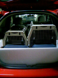 上の写真→ルフィさんとれもんさんの移動車 わんこさんたちの乗り降りには、まな板を置いて乗り降りしやすいように。キャリーは、動かないように座布団で固定し、・・・これだけでかなりの重さです。燃費わる~っ!以前は・・・必要な時だけのせてた。で、必要のないときは、ガレージに収納。なぜかっなぜかっなぜかっキャリーをから降ろすと、ルフィさんかれもんさんが急病に。降ろしたばっかりのキャリーをまた乗せて動物病院に駆け込むはめに・・・で、キャリーを車から降ろすのをやめたっそれからは、わんこさんたちは、急病もなくなってわりと元気に生きてる。なんでっ